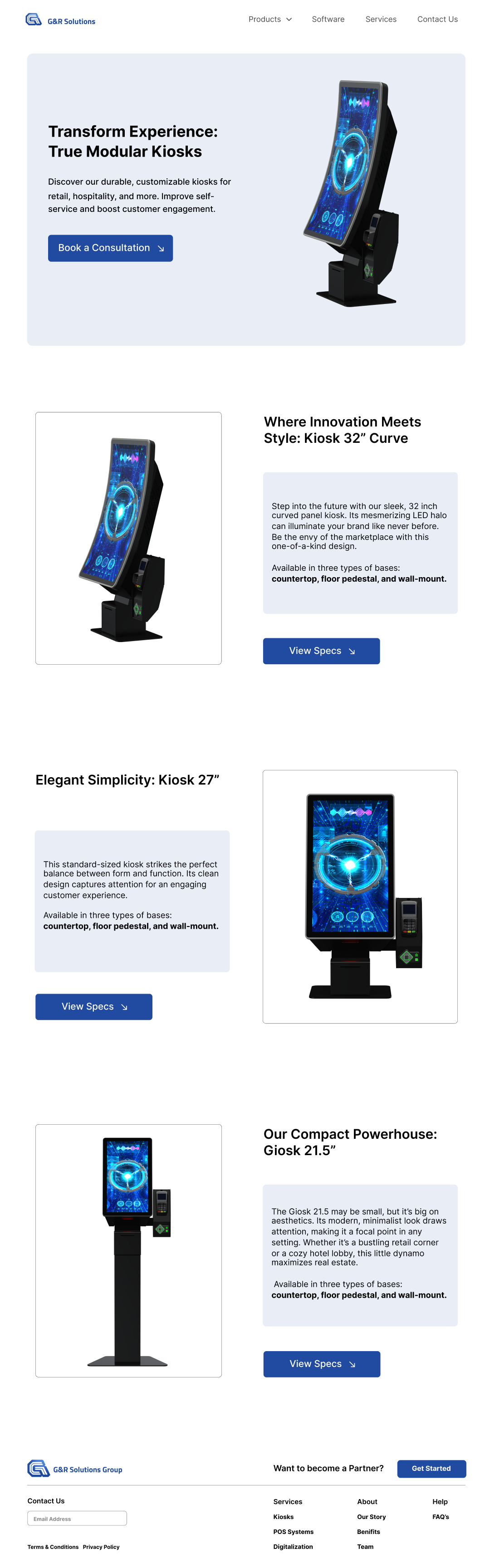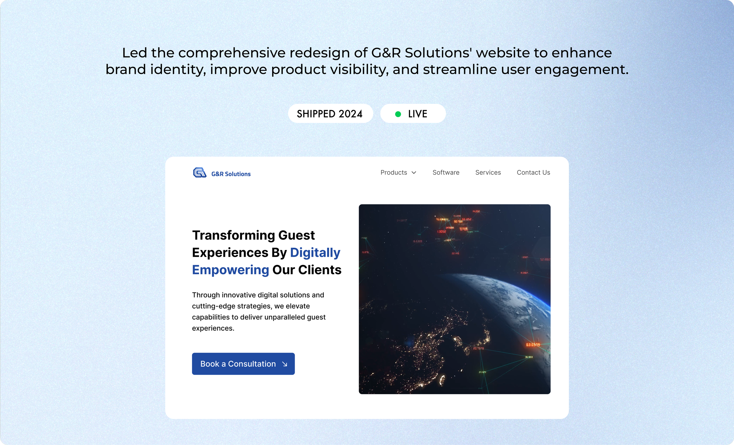 The G&R Solutions Group website redesign simplified navigation, improved product visibility, and modernized the visual design. By introducing prominent CTAs and updating the style guide, we streamlined the user experience and boosted SEO, leading to a 40% increase in site traffic.