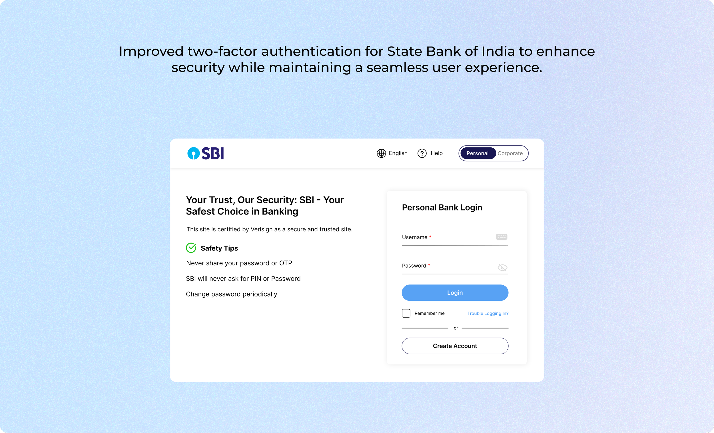 State Bank of India (SBI) is the largest public sector bank in India, serving millions of customers globally with a wide range of banking services, including personal and corporate banking, loans, and digital financial solutions. For my UX design case study, I focused on redesigning a critical component of their digital platform, ensuring a balance between security and ease of use to improve the overall customer experience.