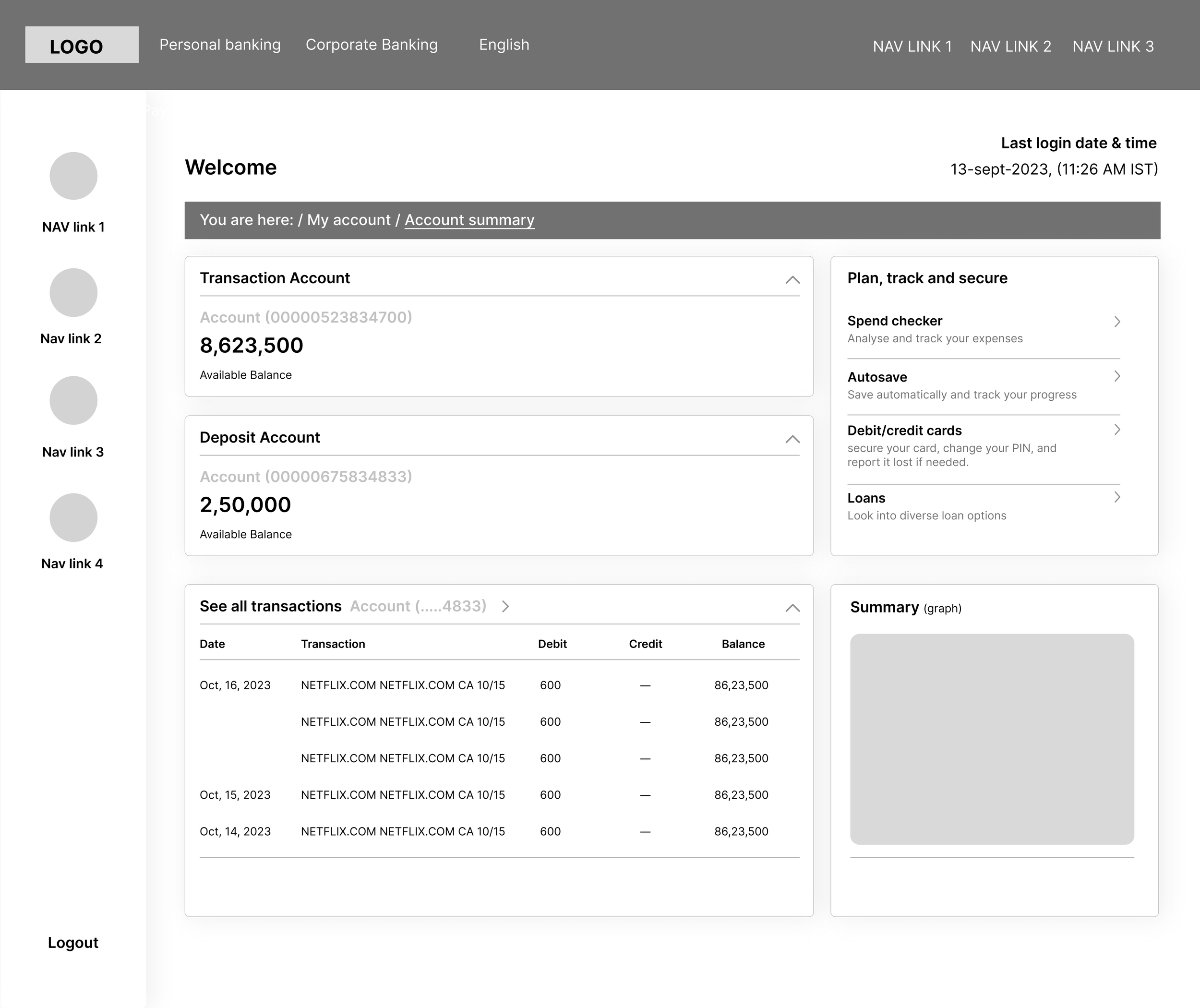 When I started designing the wireframes, I wanted to tackle the main frustrations users had shared. First, I focused on making the login process faster and easier, cutting out extra steps so users could log in without the usual hassle. I also aimed to clean up the landing page, so important information would stand out rather than get lost in clutter. Finally, I looked at the navigation—it felt confusing with so many options split across multiple bars—so I worked on organizing it in a way that would feel clear and straightforward.