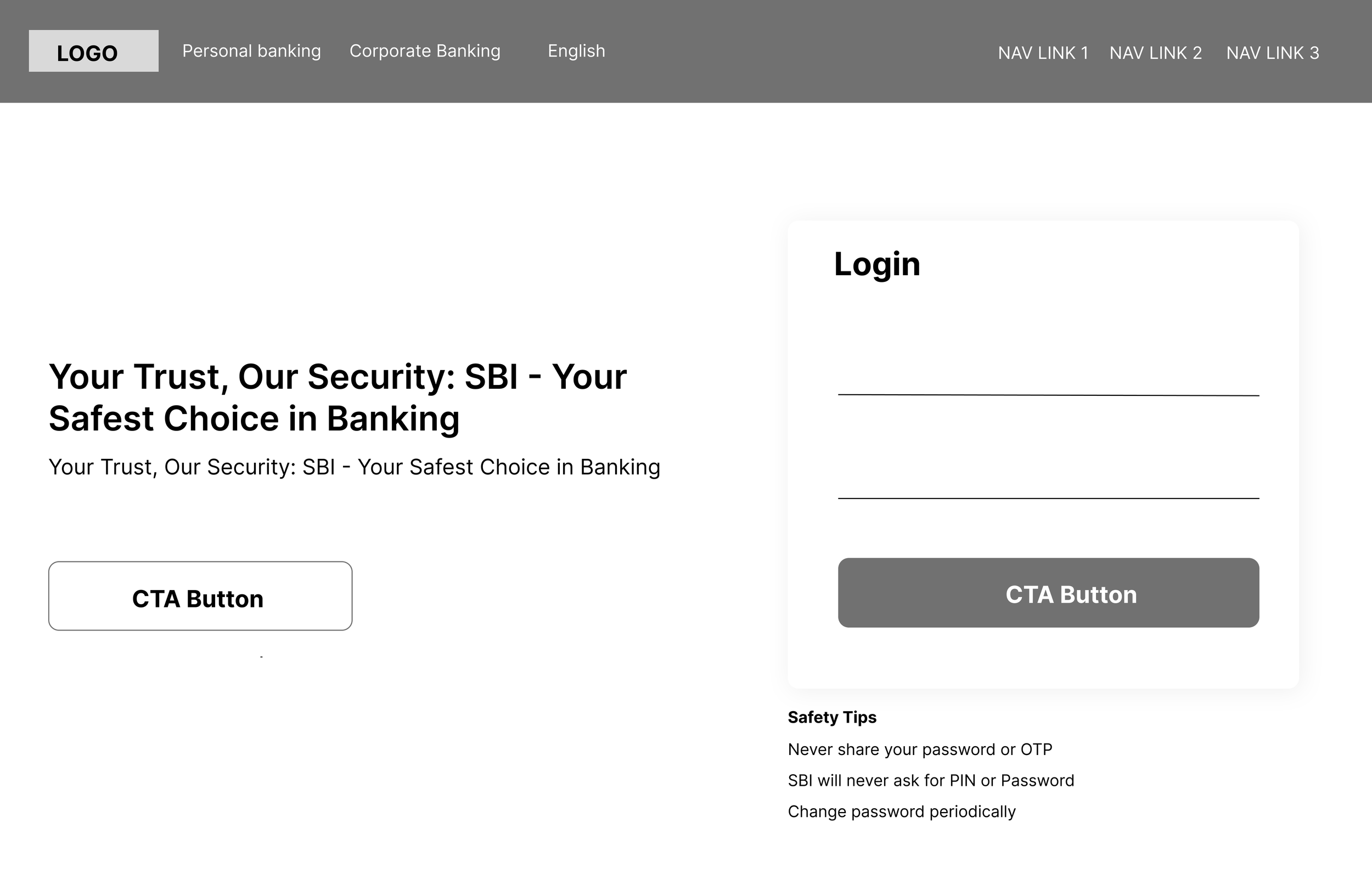 I added a toggle button to the navigation bar to differentiate between "personal" and "corporate" banking. Each option directs users to separate login portals, allowing them to easily switch between portals.