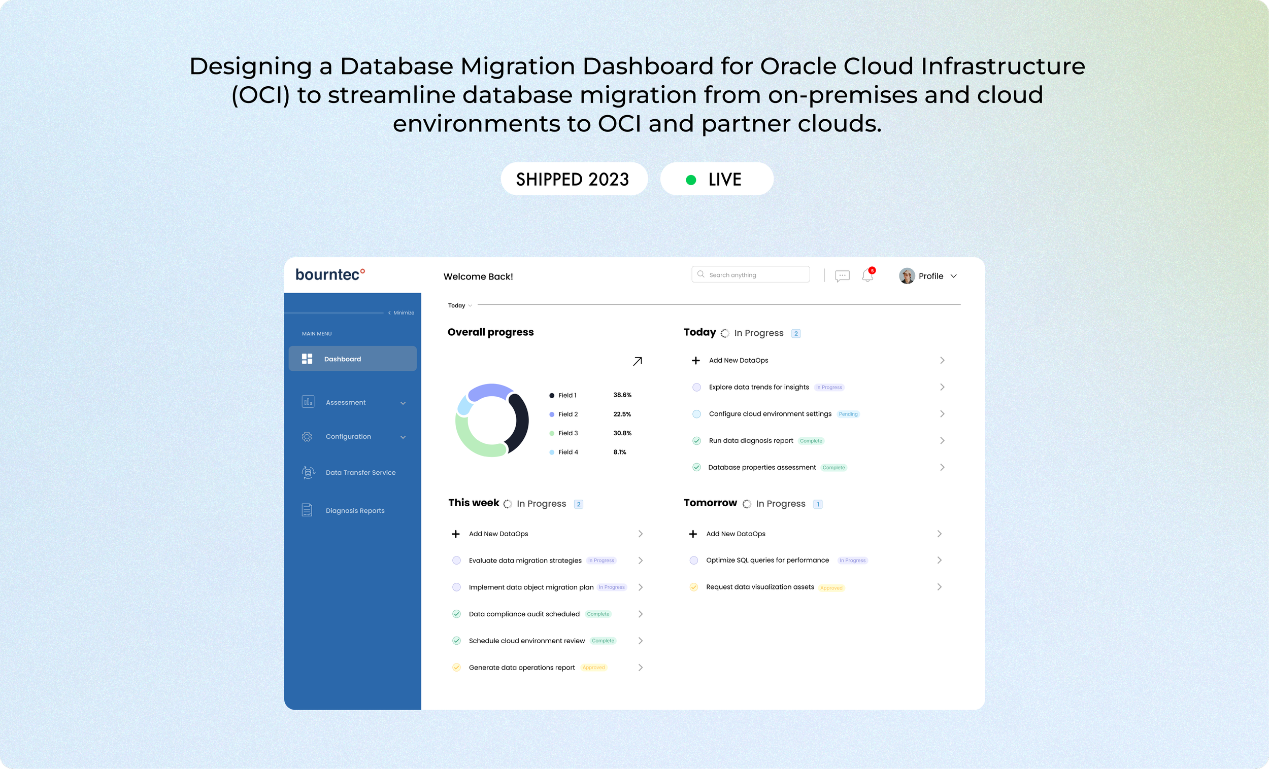 Designing a Database Migration Dashboard for Oracle Cloud Infrastructure (OCI) to streamline database migration from on-premises and cloud environments to OCI and partner clouds.